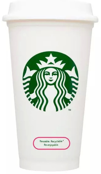 在Starbucks,通常外带时都会用纸杯装着咖啡(除非顾客愿意自备随行杯),虽然方便了顾客,却也因此制造了大量的垃圾。在2013年的美国,则多了一种新选择,推出了可重复使用的白纸杯,杯上除了大大的美人鱼Logo之外,什么都没印,不过这个纸杯是要钱的,一个一美元。为了鼓励大家多多使用,当你用这个纸杯购买饮料时,星巴克会给你0.1美元的折价,等于用个十次也就回本了。